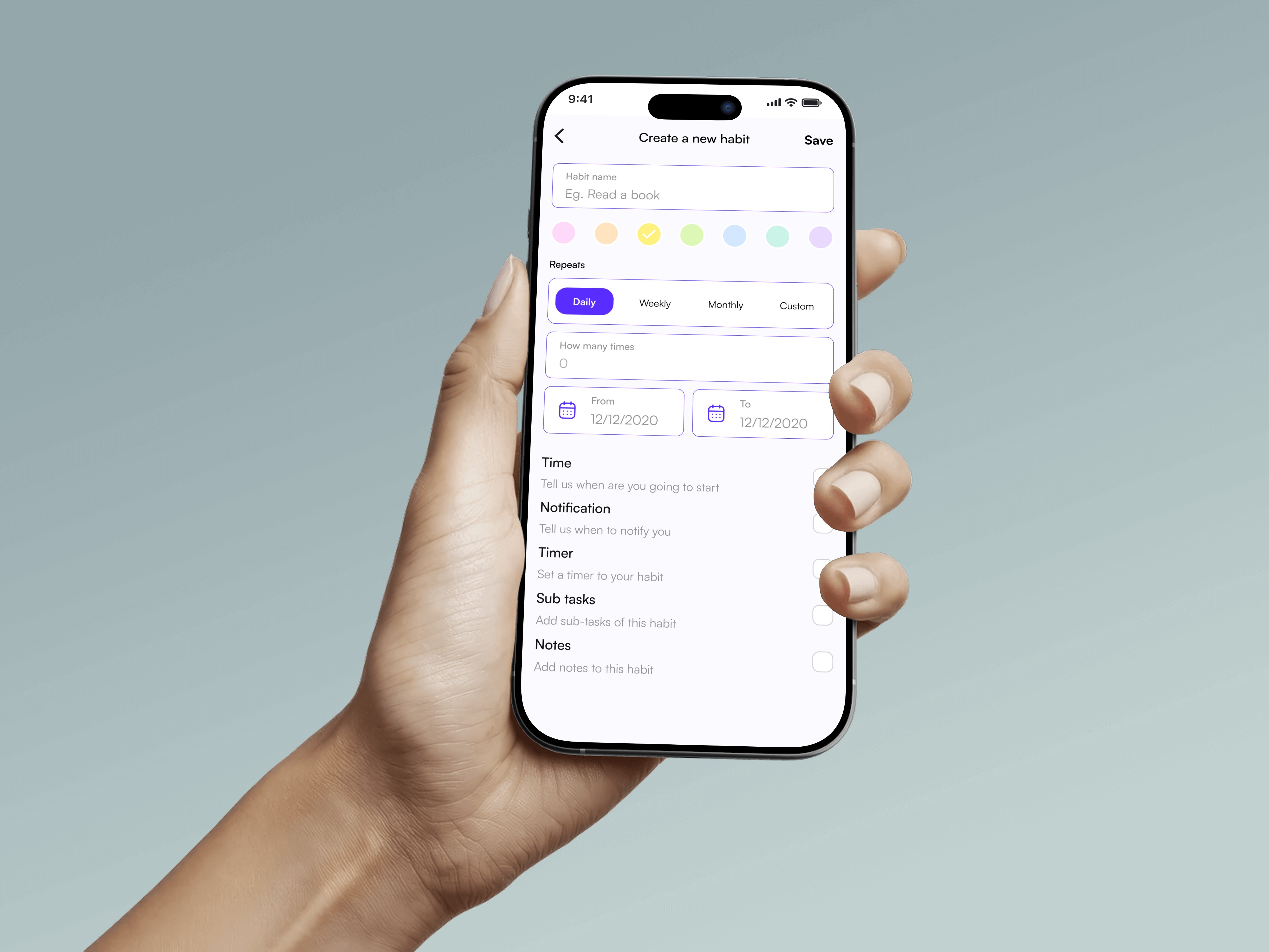 Flexible Task Creation: I streamlined the habit creation flow to support complex habit configuration, including sub-tasks, timers, notes, and custom scheduling, moving far beyond simple binary tracking.